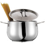 Il nuovo cuociscola, grazie alle sue particolari caratteristiche, è lo strumento di cottura più pratico e funzionale per cucinare il più famoso piatto italiano. Il coperchio forato ad incastro permette di scolare perfettamente senza bisogno di altri accessori.