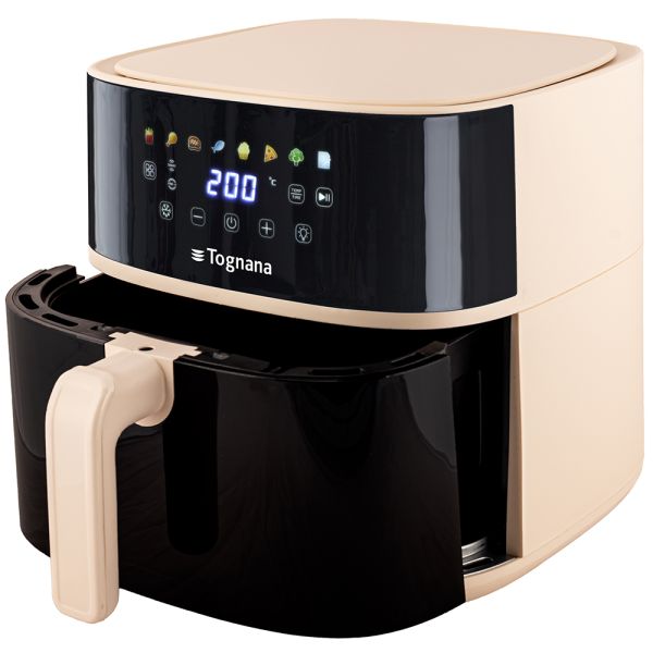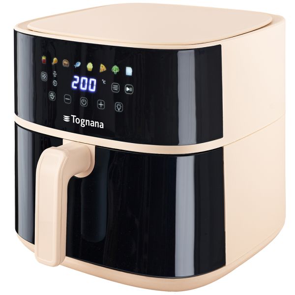 Con un display digitale a colori e 8 programmi preimpostati la friggitrice ad aria 8 L beige Champagne Iridea fa parte dell’ampia gamma di piccoli elettrodomestici Tognana disponibili in più colorazioni dal look moderno e innovativo, adatto a qualsiasi cucina! Ideale per cuocere senza l’aggiunta di olio fino a 6 porzioni, la friggitrice ad aria da 8 L Iridea beige con doppia resistenza, superiore ed inferiore, ti permette di sbizzarrirti con molteplici ricette da poter monitorare a vista grazie alla finestra in vetro, e facilissime da preparare con gli 8 programmi preimpostati in dotazione: patatine, pollo, carne, crostacei, carne, pesce, dolci, verdure e non solo, con un metodo di cottura sano e gustoso! Tra le principali funzioni presenta inoltre un timer di 60 minuti, la temperatura regolabile da 80° a 200°, il promemoria di scuotimento durante la cottura, lo spegnimento automatico, la funzione scongelamento, la protezione da surriscaldamento, e un sistema di interruzione dell’alimentazione quando si apre lo sportello. La friggitrice ad aria 8 L Iridea Champagne Beige è disponibile anche nella colorazione Carta da Zucchero, e in diverse capacità per soddisfare ogni tua esigenza. *La griglia estraibile è lavabile in lavastoviglie; il corpo della friggitrice è lavabile solo a mano con panno morbido e leggermente inumidito.