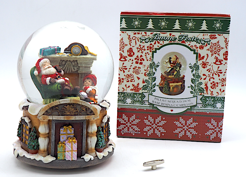 Il globo trasparente racchiude una scena natalizia suggestiva, mentre la base in resina è finemente decorata con dettagli tradizionali. Azionando il carillon, il globo diffonde una melodia natalizia dolce e armoniosa, mentre, scuotendolo, i fiocchi di neve cadono creando un’atmosfera magica.