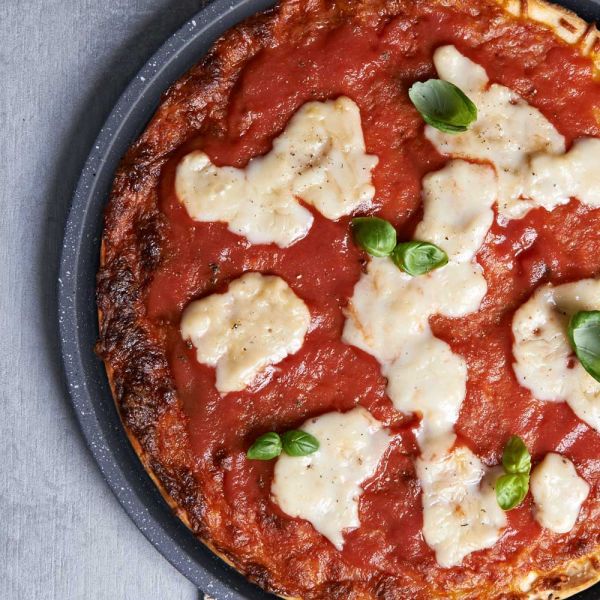 Teglia da forno tonda per pizza, focacce e dolci, lavabile in lavastoviglie.