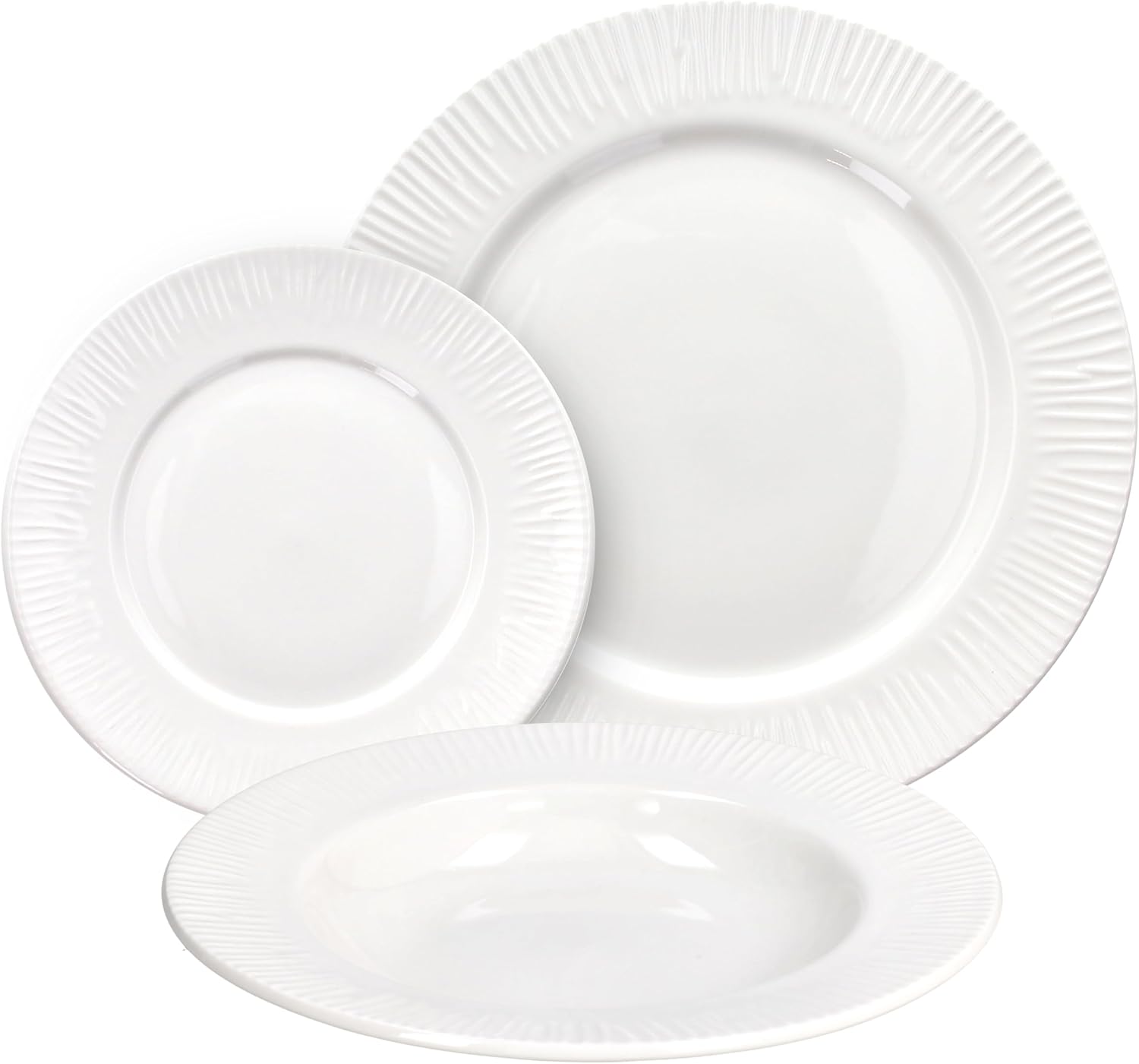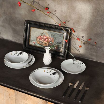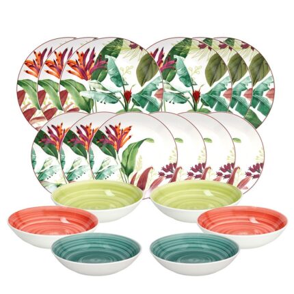 - Servizio completo: Il set include 18 piatti suddivisi in 6 piatti piani, 6 piatti fondi e 6 piatti da dessert, perfetto per apparecchiare la tavola con eleganza e praticità.