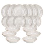 | Composizione | 6 piatti piani 27 cm; 6 piatti fondi 20 cm; 6 piatti dessert 19 cm |