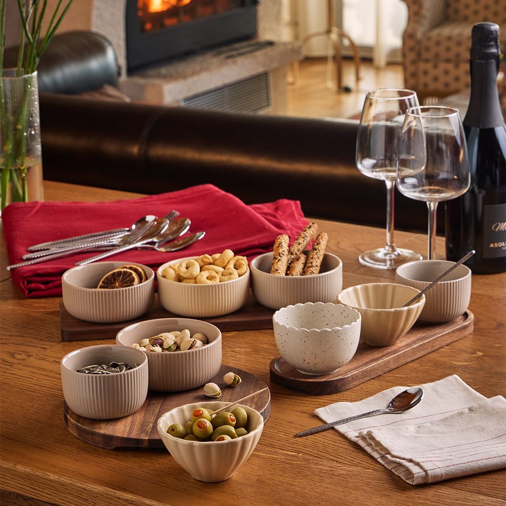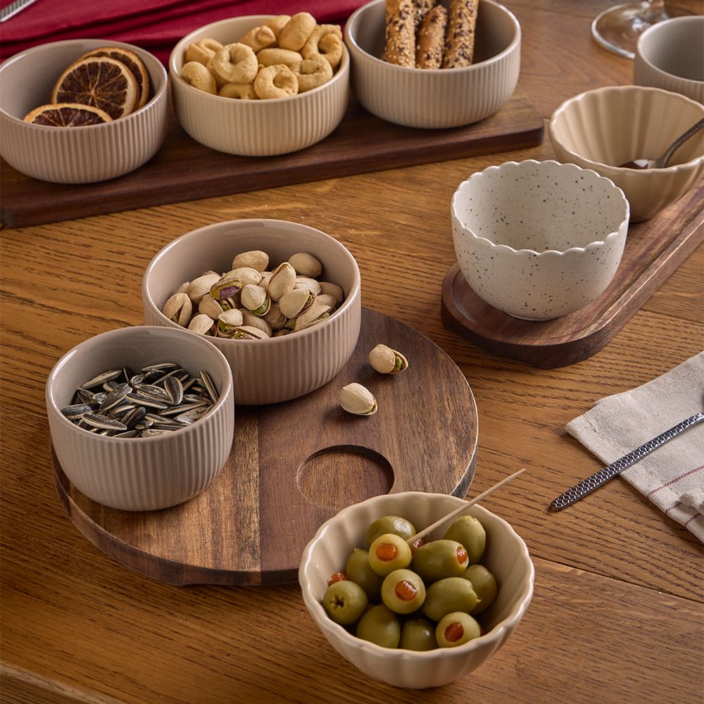 Set 3 Ciotole + Vassoio Ovale 28,5 x 9 Cm tapas Plume Materiale principale: Stoneware Altro materiale: LEGNO DI ACACIA
