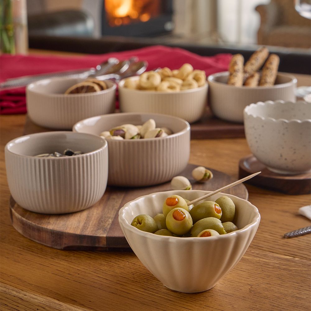 Set 3 Ciotole + Vassoio Rotondo 20 Cm Plume Stoneware Multicolor Linea Tapas