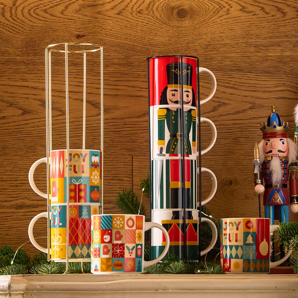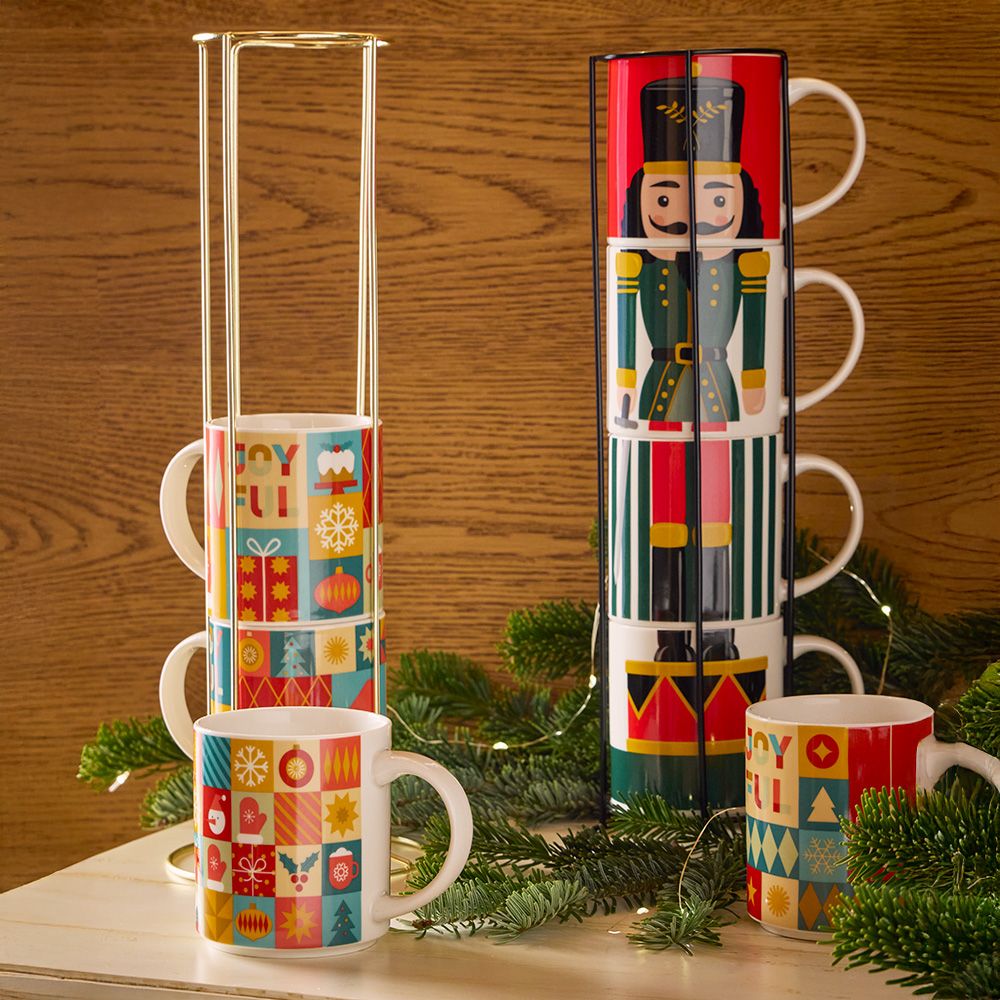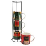 Porta la magia delle feste direttamente nella tua cucina con questo set esclusivo di 4 mug natalizi impilabili Toy Soldier, ispirati al celebre schiaccianoci! Quando impilate, le tazze formano l’immagine completa di un elegante soldatino natalizio, perfetto per decorare la casa in stile fiabesco. Realizzate in New Bone China resistente, sono ideali per gustare tè, caffè o cioccolata calda nelle giornate invernali. Il set è completato da un pratico supporto in metallo nero, che consente di risparmiare spazio e aggiunge un tocco decorativo unico al piano cucina o alla credenza. Lavabili in lasvastoviglie ed idonee all’utilizzo in microonde.