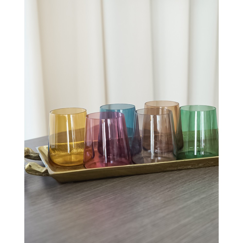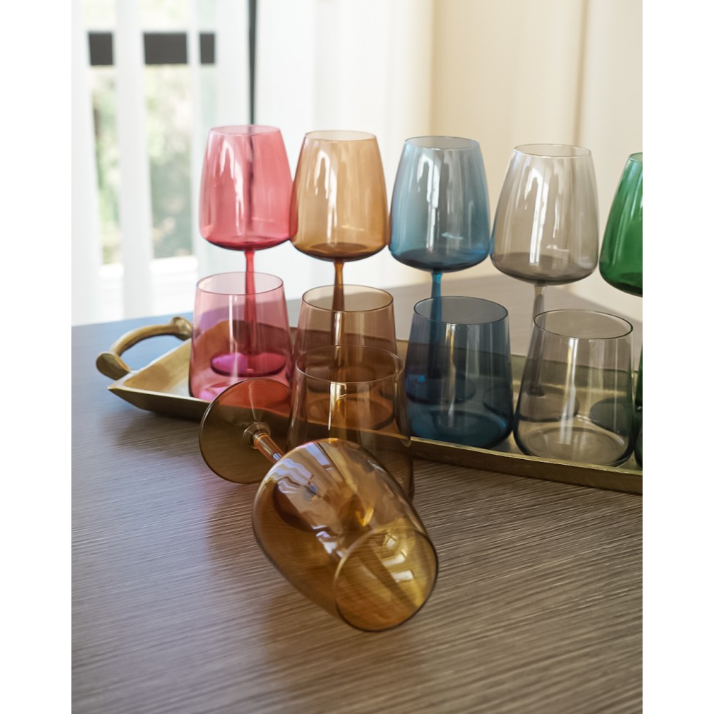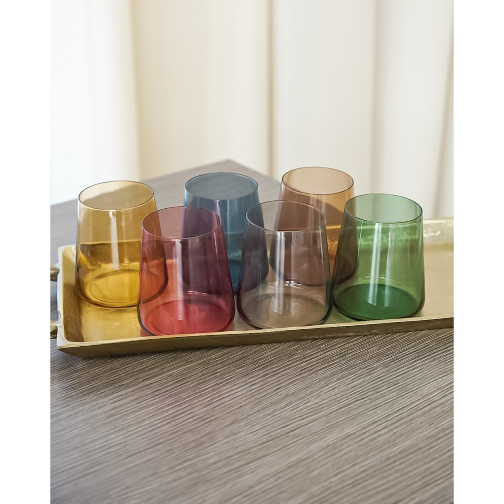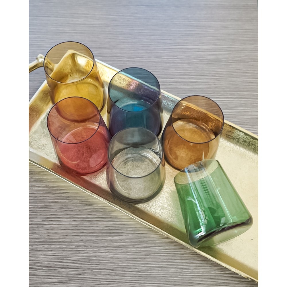 I nostri bicchieri Jolangè in vetro colorato sono perfetti per aggiungere un tocco di colore al tuo tavolo o per un regalo originale. Con una capacità di 38cl, goditi le tue bevande preferite in modo elegante e divertente. Set composto da 6 bicchieri colorati.