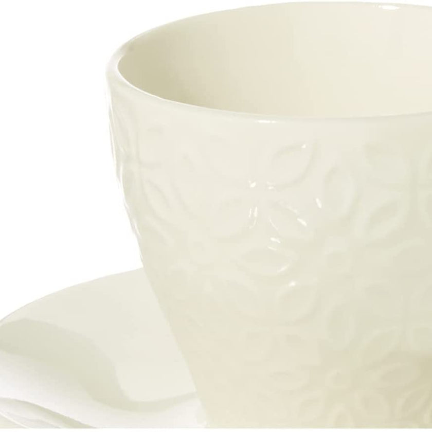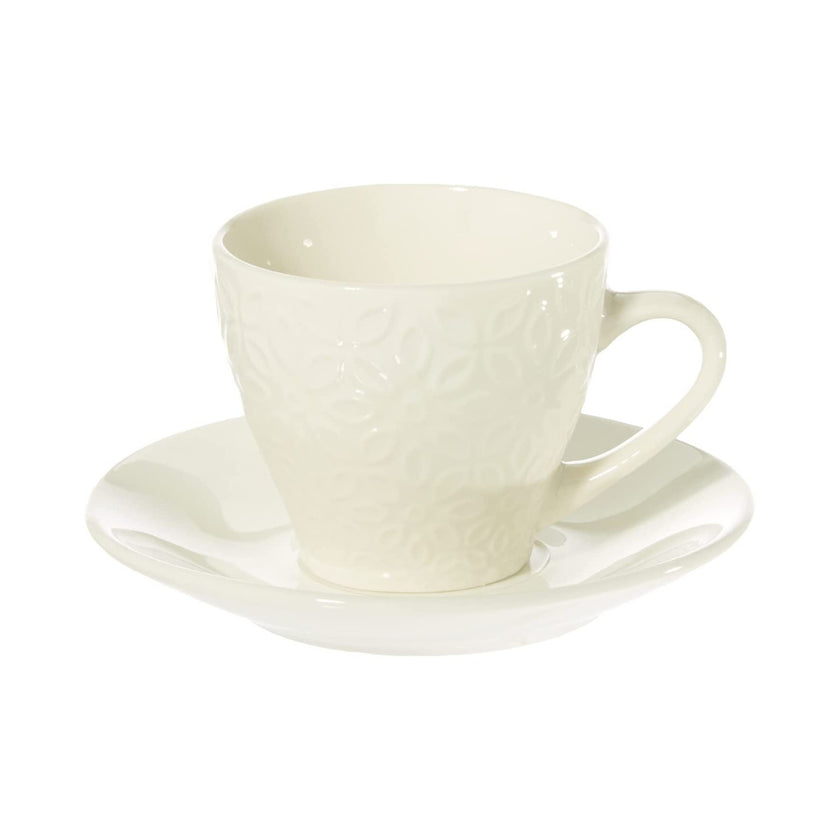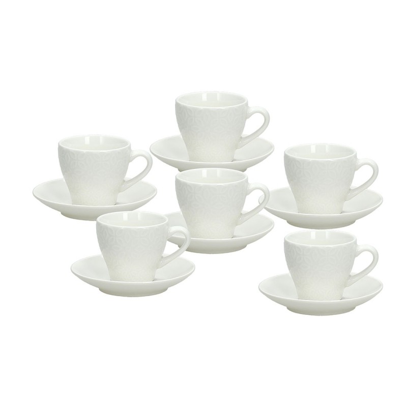 Set da 6 tazzine da caffè in porcellana della linea Olimpia Margaret di Tognana. Le tazze sono di colore bianco e presentano una delicata decorazione a rilievo. Sono realizzate in porcellana di alta qualità, resistente e igienica. Possono essere lavate in lavastoviglie e sono adatte all’uso nel microonde.