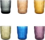 Set composto da 6 bicchieri Lyric realizzati in pasta di vetro, lavorata sulla superficie esterna, in colori assortiti.