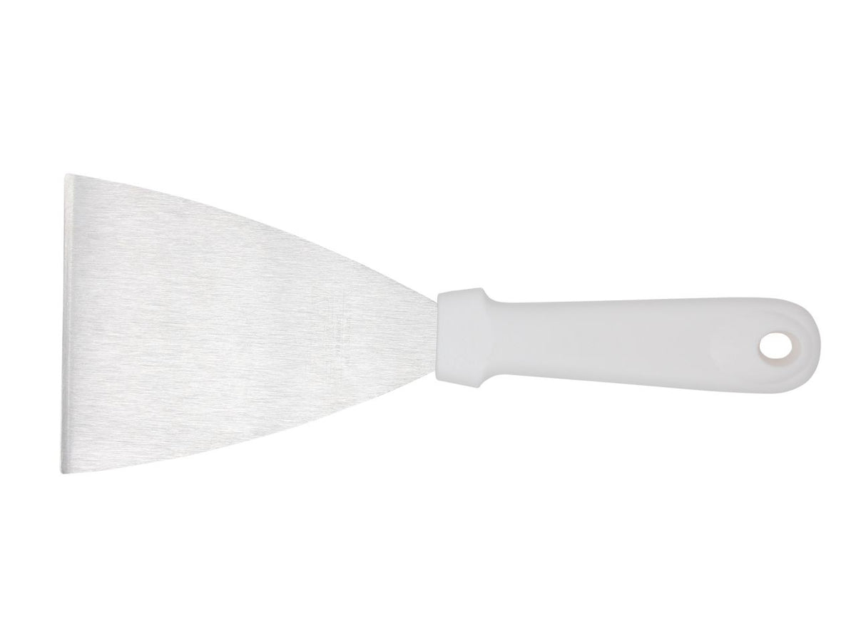 Spatola raschietto per impasto e per pizza, larghezza lama cm. 10, manico bianco con impugnatura ergonomica in polipropilene lavabile in lavastoviglie, ma si consiglia di pulire e asciugare il prodotto dopo l’uso per preservarne la qualità e aumentarne la durata.
