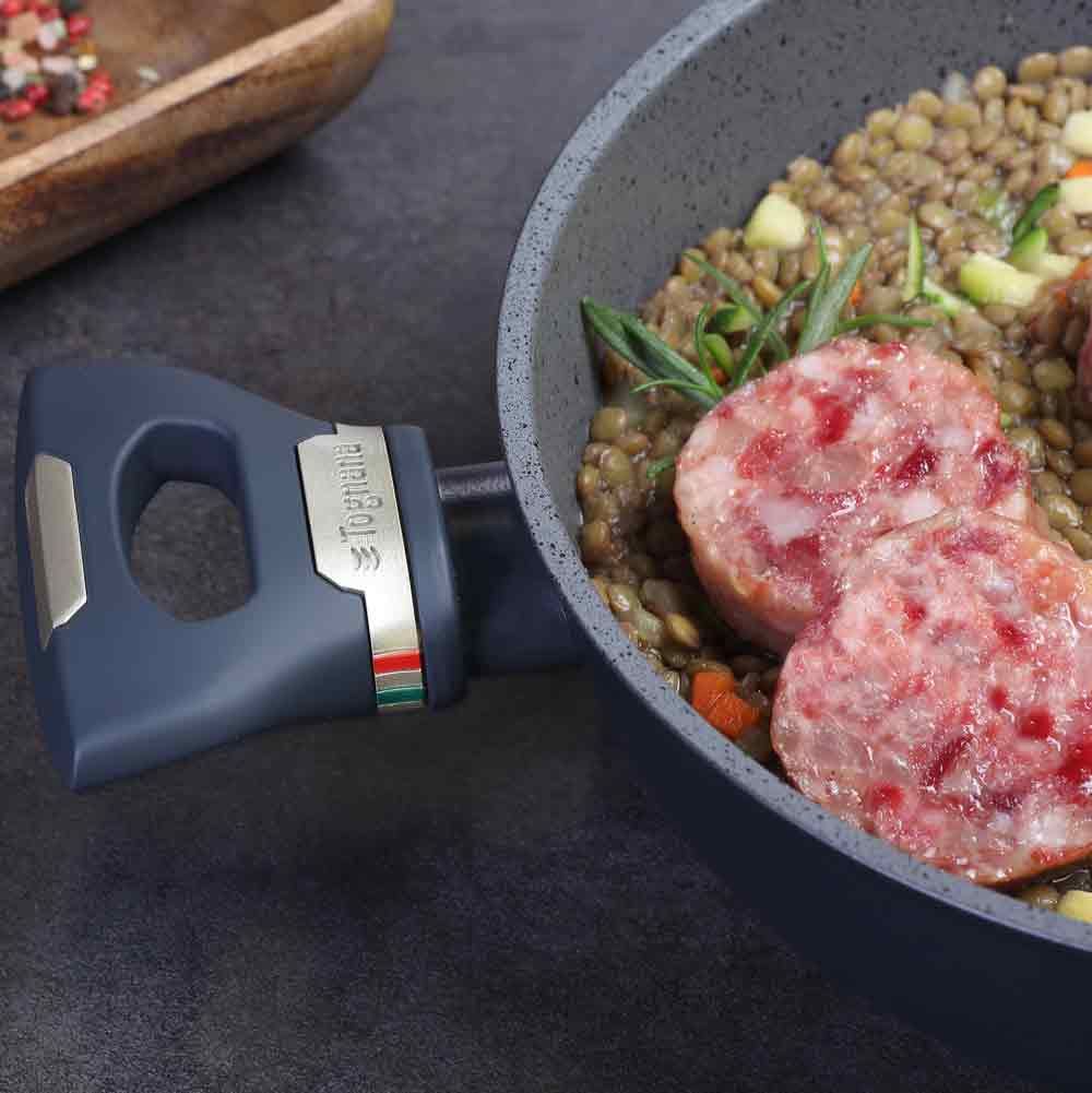 Il tegame a 2 manici della linea Italika Premium marchiato “Tognana”, da 28 cm di diametro e 8 cm di altezza, per una capacità di 3.800 cc, rappresenta un accessorio indispensabile per la tua quotidianità in cucina per preparare diversi alimenti come sughi, contorni e secondi piatti, unendo prestazioni straordinarie al design esclusivo made in Italy.